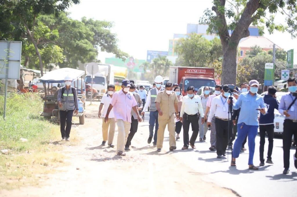 (ភ្នំពេញ)៖ អភិបាលខណ្ឌឫស្សីកែវ លោក ជា ពិសី និងជាសមាជិកក្រុមលេខាសម្ដេចតេជោ ហ៊ុន សែន នាយករដ្ឋមន្ត្រីកម្ពុជា បានដឹកនាំមន្ត្រីជុំនាញ និងអាជ្ញាធរសង្កាត់ ព្រមទាំងភាគីក្រុមហ៊ុន (ប៊ីប៊ីអ៉ី) ដែលជាក្រុមហ៊ុនកំពុងអនុវត្តគម្រោងធ្វើផ្លូវ ក្នុងការចុះពិនិត្យមើលជាក់ស្ដែង ដើម្បីជំរុញ និងពន្លឿនបន្ថែមទៀតចំពោះការជួសជុល និងស្ថាបនាផ្លូវជាតិលេខ៥ឡើងវិញ ចាប់ពីខាងមុខរោងចក្រ SKD សង្កាត់គីឡូម៉ែតលេខ៦ រហូតដល់ចំណុចគីឡូម៉ែតលេខ៨ សង្កាត់ច្រាំងចំរេះទី១។