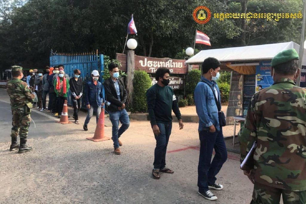 ចំណែកឯពលរដ្ឋខ្មែរ ដែលបន្តវិលចូលប្រទេសវិញតាមច្រកទ្វារព្រំដែនអន្តរជាតិអូរស្មាច់ ខេត្តឧត្តរមានជ័យ មានចំនួន១០២នាក់ ស្រី ៥២នាក់ ជាពលករពុំបានប្រថាប់ត្រា ត្រូវបានអជ្ញាធរដឹកជញ្ជូនយកទៅធ្វើចត្តាឡីស័ក នៅសាលាវិទ្យាល័យតេជោ សែន សំរោង ក្រុងសំរោង ខេត្តឧត្តរមានជ័យ ។ ចំនួន១០២នាក់នេះ សមត្ថកិច្ចគិតត្រឹមម៉ោង១៥ក្នុងថ្ងៃទី២៤ ធ្នូនេះ ។ចំណែកអាជ្ញាធរខេត្តឧត្តរមានជ័យបានឲ្យដឹងថា គិតត្រឹមថ្ងៃទី២៣ នេះ ពលករចំនួន៤០៣នាក់ បានចូលពីថៃតាមច្រកអូរស្មាច់នៅក្នុងនោះ ១៣១នាក់ត្រូវបានយកសំណាកទៅធ្វើតេស្ត ដោយសារពួកគាត់នៅជិតតំបន់ដែលមានផ្ទុះជំងឺកូវីដ១៩។