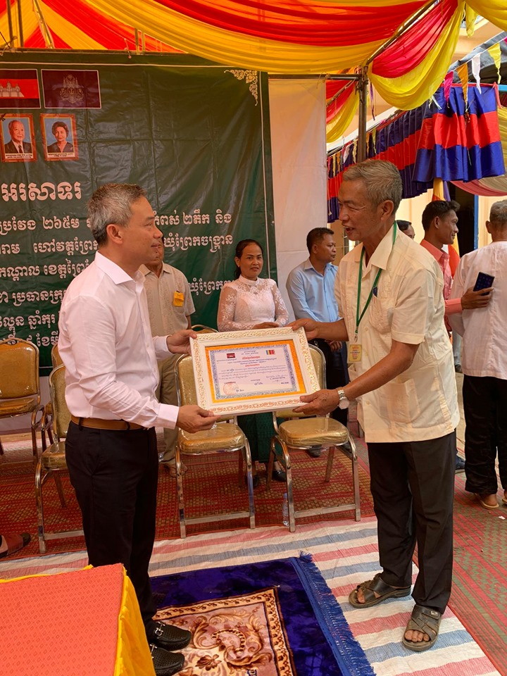 ឧបត្ថម្ភថ្លៃជួសជុលក្បាលស្ពានឈើ នៅភូមិ បាប្រិយ ចំនួន ១៩៥០ ដុល្លារ – ប្រគេនម៉ូតូ មួយគ្រឿង តំលៃ 950$ ដល់ ព្រះតេជគុណ ឡុង សុផល ចៅអធិការវត្ត ព្រែកចង្ក្រានក្រោម។
