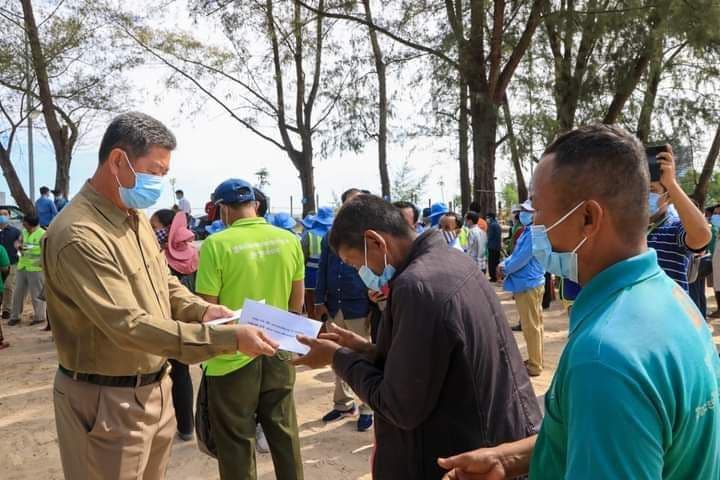 អមដំណើរដោយលោកអភិបាលរងខេត្តព្រះសីហនុ លោកអភិបាល ក្រុងព្រះសីហនុ និងមន្ទីរ អង្គភាពជំនាញ បានអញ្ជើញជួបសំណេះសំណាល ព្រមទាំងផ្តល់ប្រាក់ឧបត្ថម្ភលើកទឹកចិត្តដល់បងប្អូនប្រជាការពារ បុគ្គលិកសំអាតអនាម័យឆ្នេរ ឆ្នាំឆ្នេរ បុគ្គលិកក្រុមហ៊ុនសម្អាតសំណល់សំណង់ និងបុគ្គលិកក្រុមហ៊ុនពិស្ណុការ សរុបចំនួន១៣៥ នាក់ ដែលបានចូលរួមក្នុងការងារសម្អាតឆ្នេរនាពេលកន្លងមក។