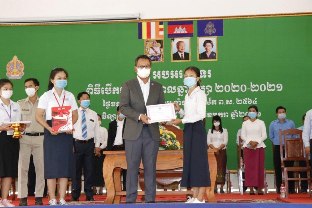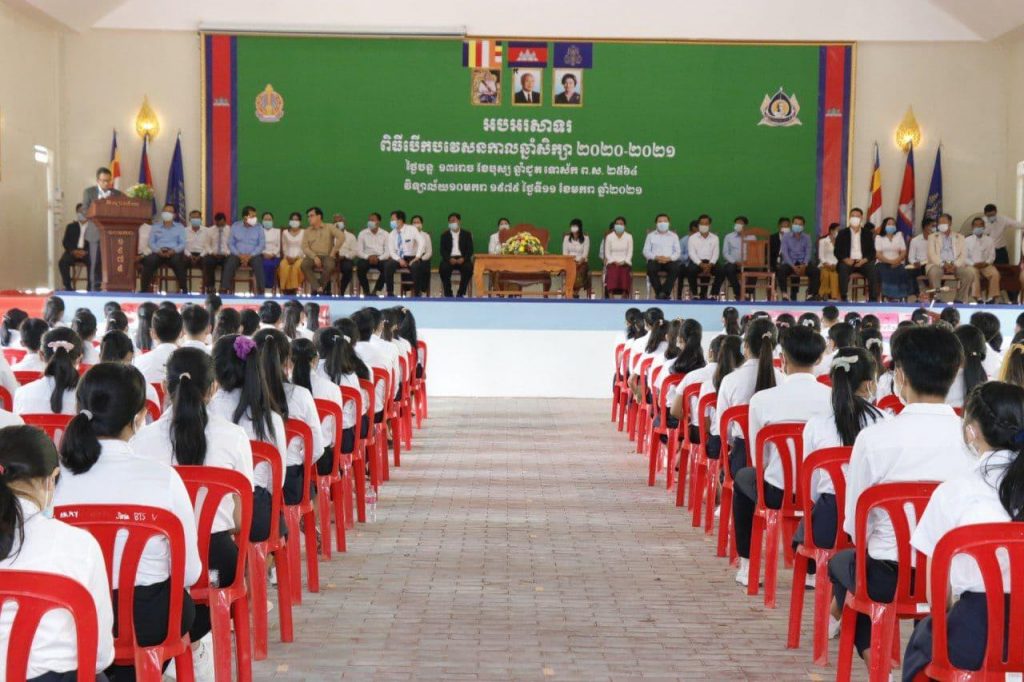 ខ្លួន និងអនុវត្តតាមវិធានការរាជរដ្ឋាភិបាល ដើម្បីប្រឆាំងនឹងជំងឺកូវីដ១៩ ក្នុងឆ្នាំសិក្សាថ្មីនេះ។លោកបញ្ជាក់ថា «ខ្ញុំសូមធ្វើការក្រើនរំលឹក និងអំពាវនាវដល់លោកគ្រូ អ្នកគ្រូ អាណាព្យាបាលសិស្ស ក្មួយៗសិស្សានុសិស្ស ត្រូវចូលរួមប្រយុទ្ធប្រឆាំងបង្ការទប់ស្កាត់ ការឆ្លងរាលដាលកូវីដ១៩ ដោយធ្វើអនាម័យឱ្យបានជាប្រចាំ ដោយលាងសម្អាតដៃនឹងទឹកសាប៊ូ ជេល ឬ អាល់កុល និងពាក់ម៉ាស់ឱ្យបានត្រឹមត្រូវ ដើម្បីសុខភាពយើង សាលារៀនយើង និងសង្គមជាតិយើង»។លោកក៏បានលើកផងដែរថា ក្រោមម្លប់សន្តិភាព សម្តេចតេជោ ហ៊ុន សែន បានយកចិត្តទុកដាក់ខ្ពស់បំផុត ក្នុងវិស័យអប់រំ ព្រមទាំងផ្តល់អគារសិក្សានៅគ្រប់ទីកន្លែង ដើមី្បឱ្យក្មួយៗបានសិក្សារៀនសូត្រ ព្រមទាំងបានយកចិត្តទុកដាក់លើកកម្ពស់សុខភាពអនាម័យ និងវិធានការការពារកូវីដ-១៩ ដើម្បីការពារកុំឱ្យមានការឆ្លងចូលមកក្នុងគ្រឹះស្ថានសិក្សា ត្រូវការពារសុវត្ថិភាព សុខភាពសិក្សា រក្សាគម្លាតសុវត្ថិភាព ១,៥ម៉ែត្រ និងសុវត្ថិភាពចំណីអាហារ ទៀតផង។ម៉្យាងទៀតក្នុងពេលនេះ ខេត្តសៀមរាប មានគម្រោងសាងសង់ផ្លូវ ៣៨ខ្សែក្នុងក្រុងសៀមរាប ក្រោមការផ្តល់ថវិការបស់សម្តេចនាយករដ្ឋមន្ត្រី ក្នុងកិច្ចអភិវឌ្ឍន៍លើហេដ្ឋារចនាសម្ព័ន្ធផ្លូវថ្នល់ក្នុងក្រុង នៅពេលដែលកំពុងជួបវិបត្តិកូវីដ-១៩ ព្រមទាំងគម្រោងការអភិវឌ្ឍន៍ស្ទឹងសៀមរាបផងដែរ។