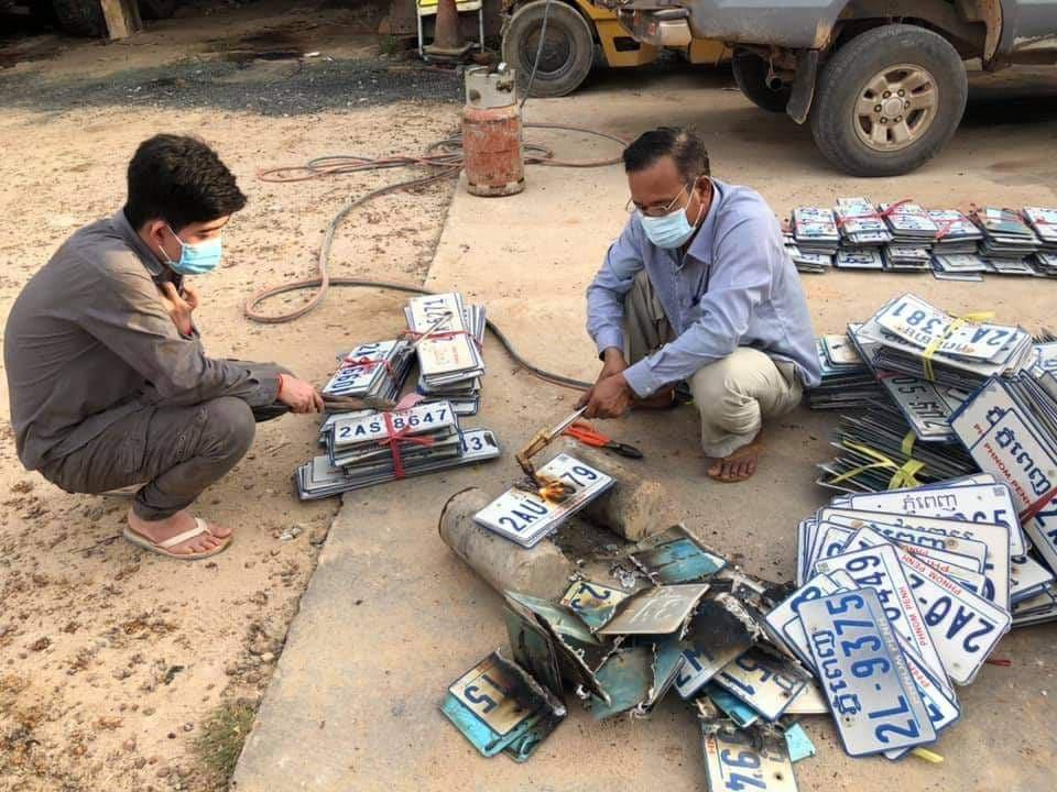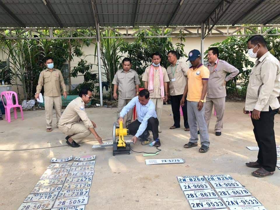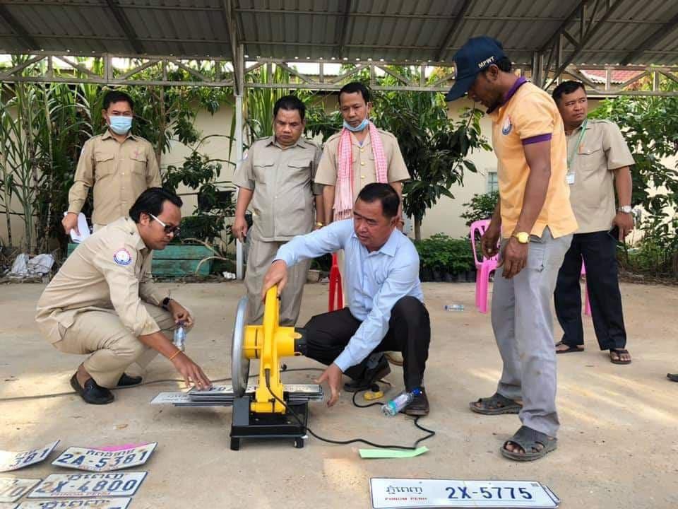 មន្រ្តីកម្ទេចស្លាកលេខរថយន្តចាស់ៗចោលចំនួន១៣៥៨ស្លាក នៅខេត្តស្វាយរៀង ក្រោយពលរដ្ឋបានផ្ទេរកម្មសិទ្ធិថ្មី…