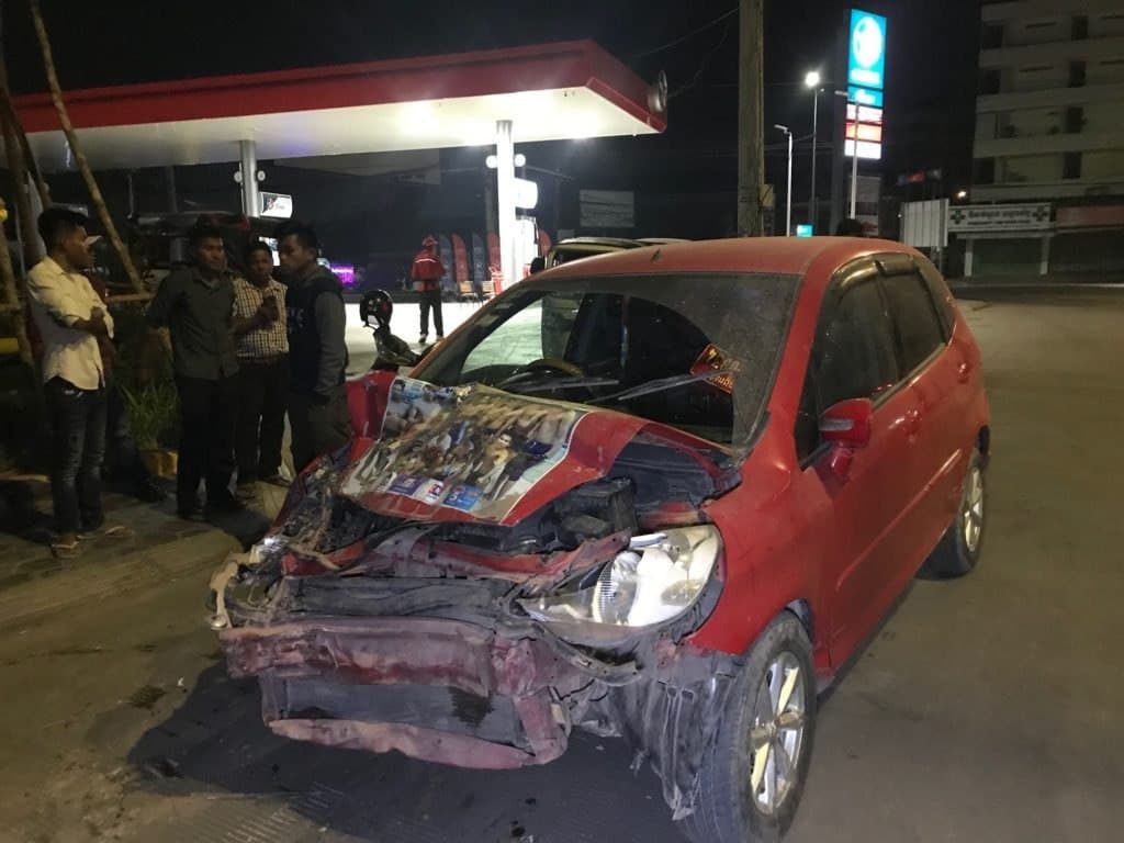 ភ្នំពេញ៖ បុរសម្នាក់ បើករថយន្តលឿន វ៉ារថយន្តមួយគ្រឿង មិនបានមើលមុខបុករថយន្តកុងតឺន័រ ដែលកំពុងឈប់ចតពីក្រោយ រងការខូចខាតមួយកំណាត់មុខ។ ហេតុការណ៍នេះ បានកើតឡើង កាលពីវេលាម៉ោង ២ និង ៣០នាទី រំលងអាធ្រាត្រ ឈានចូលថ្ងៃទី៥ ខែកុម្ភៈ ឆ្នាំ២០២១ នៅតាមបណ្តោយផ្លូវបេតុងទួលពង្រ ក្នុងភូមិត្រពាំងថ្លឹង សង្កាត់ចោមចៅទី១ ខណ្ឌពោធិ៍សែនជ័យ។