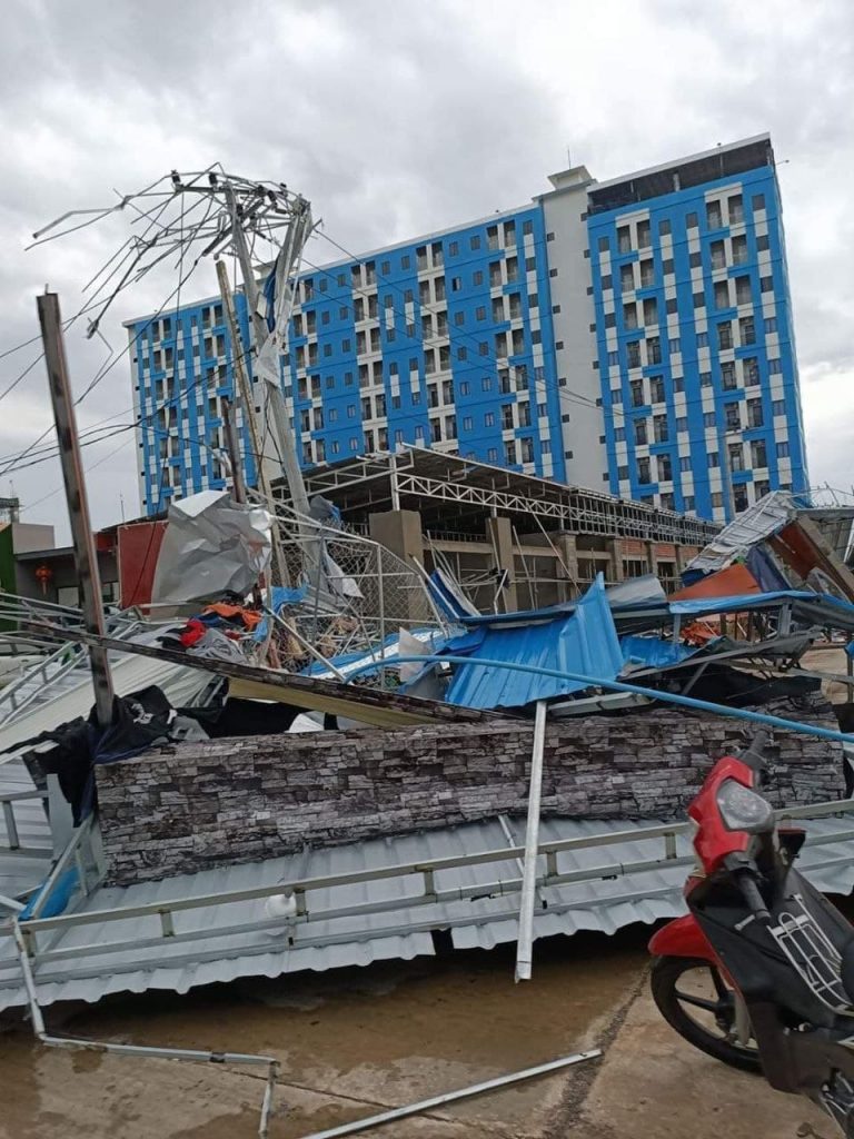ខេត្តបន្ទាយមានជ័យ៖ តូបអាជីវករជាច្រើនត្រូវបានរងការខូចខាត និងខ្លះទៀតត្រូវខ្យល់វាយប៉ើងជាប់បង្គោលភ្លើងកាលពីរសៀលម៉ោង៣ថ្ងៃទី៤ ខែមេសា ឆ្នាំ២០២១ ឋិតនៅភូមិសាមគ្គីមានជ័យសង្កាត់និងក្រុងប៉ោយប៉ែត។