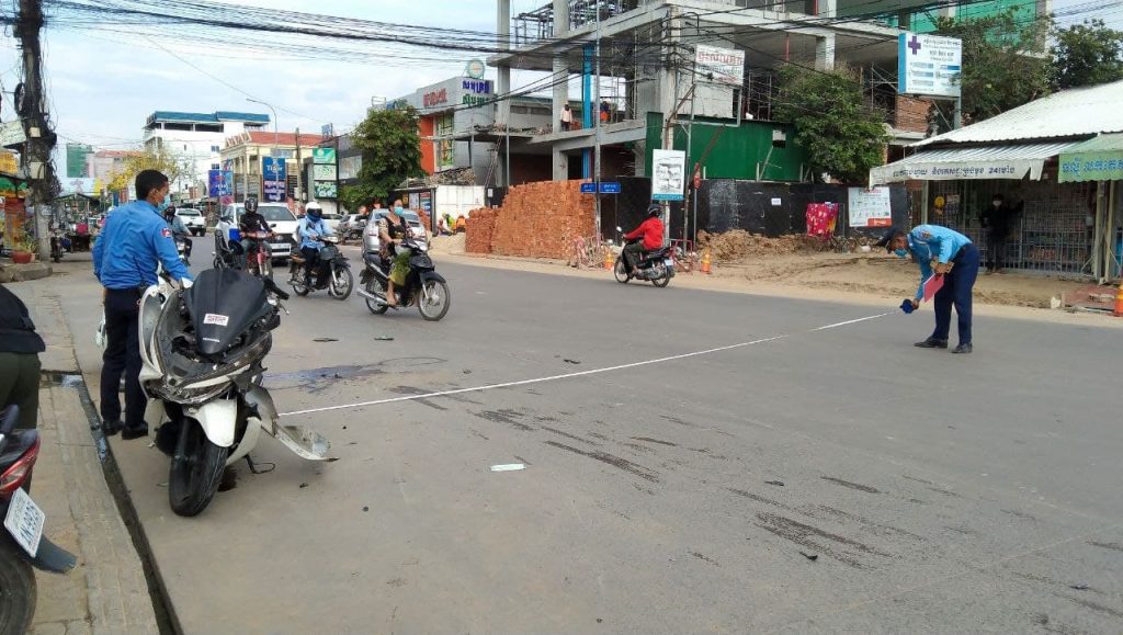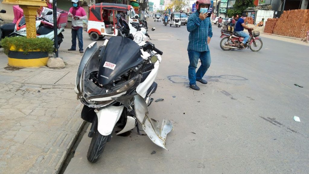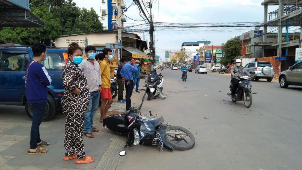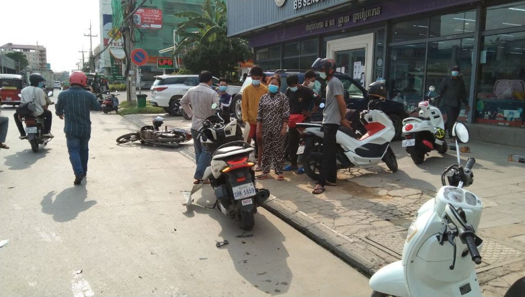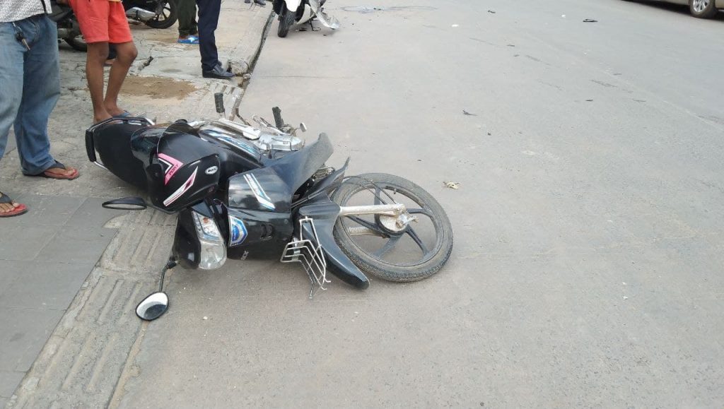 ភ្នំពេញ ៖ បុរសម្នាក់បើកម៉ូតូក្នុងល្បឿនលឿនខ្វះការប្រុងប្រយ័ត្នជ្រុលទៅបុកម៉ូតូមួយគ្រឿងទៀតដែលកំពុងតែឆ្លងផ្លូវពេញទំហឹងបណ្ដាលឲ្យភាគីទាំងសងខាងចំនួន៤នាក់រងរបួសធ្ងន់ត្រូវបានបញ្ជូនទៅមន្ទីរពេទ្យភ្លាមៗ។
