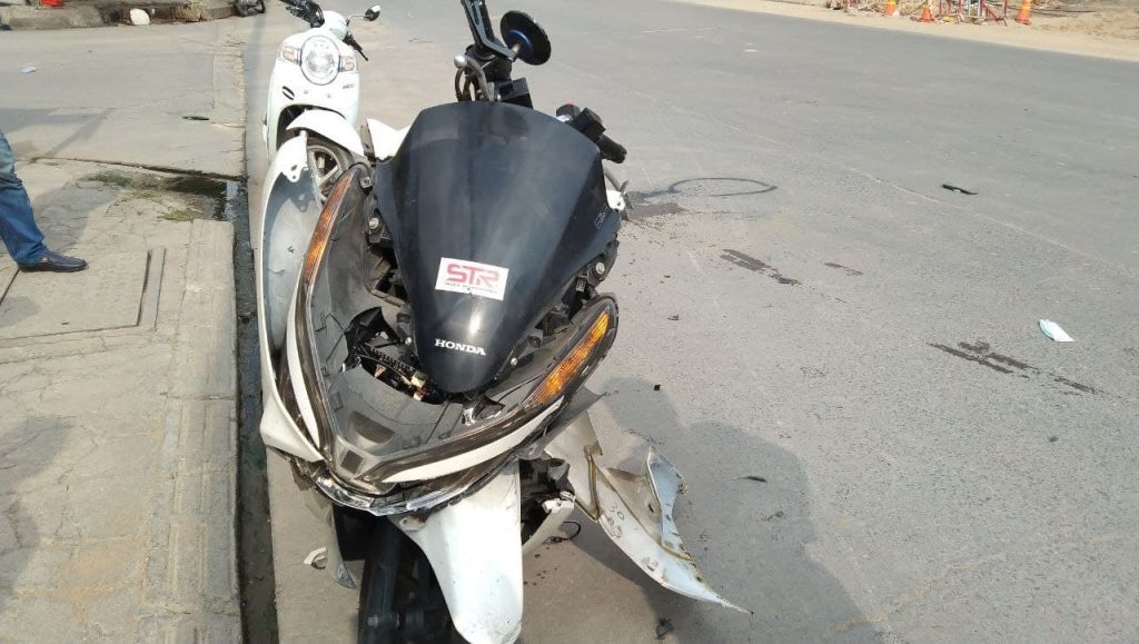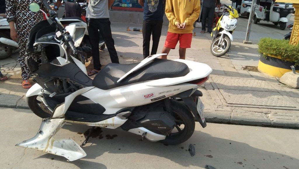 ជិះម៉ូតូក្នុងល្បឿនលឿនជ្រុលទៅបុកម៉ូតូមួយគ្រឿងទៀតកំពុងឆ្លងផ្លូវ…
