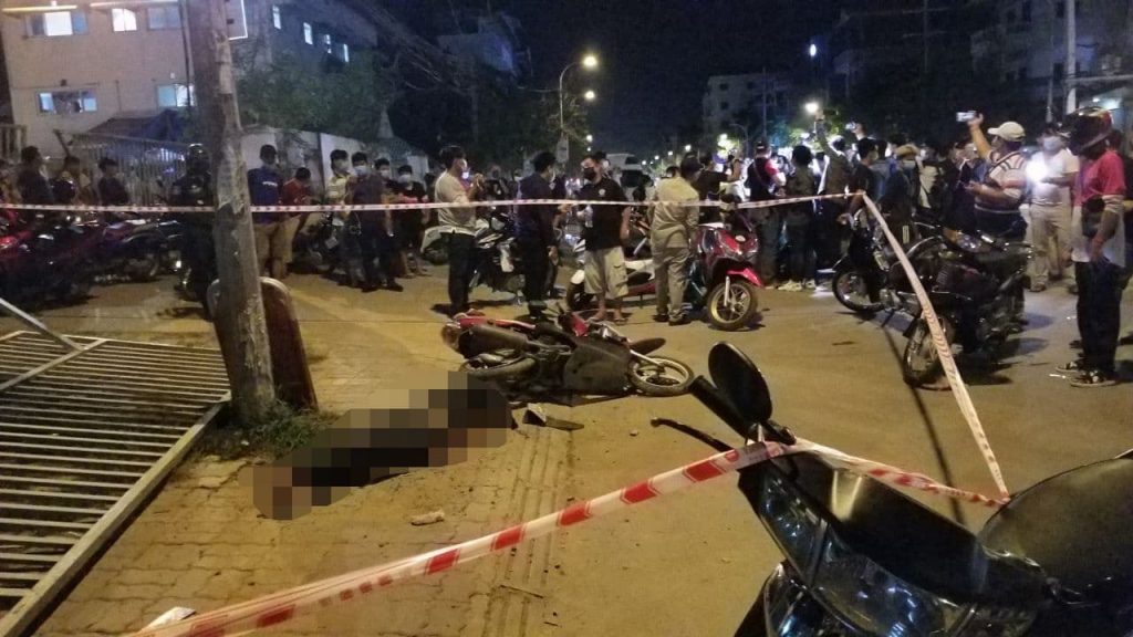 ភ្នំពេញ ÷ ជនដៃដល់មានគ្នា២នាក់ បានជិះម៉ូតូមួយគ្រឿង មិនចាំម៉ាកមកដេញកាប់ទៅលើយុវជនម្នាក់ ពីក្រោយ បណ្តាលឲ្យជនរងគ្រោះស្លាប់ ក្នុងថ្លុកឈាម ករណីខាងលើនេះសង្ស័យថា ជាករណីស្នេហាត្រីកោណ។