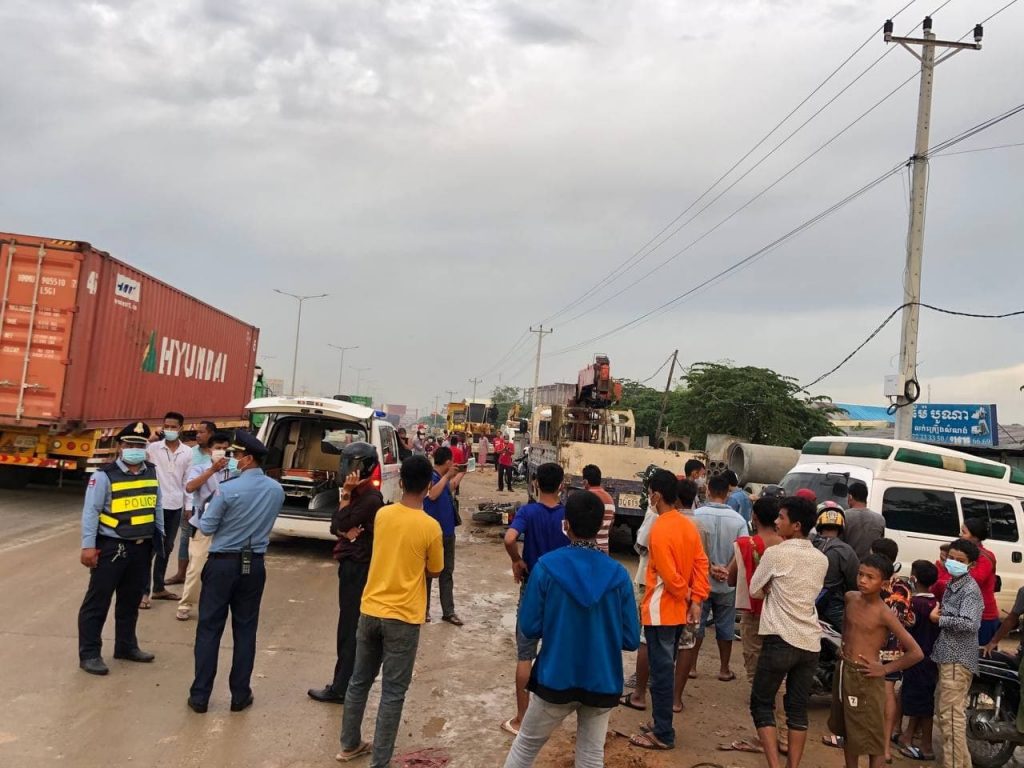ភ្នំពេញ ៖ រថយន្តអាបែនដឹកដីមួយគ្រឿងបើកបញ្ច្រាសផ្លូវត្រូវបុរសម្នាក់ជិះម៉ូតូទៅប៉ះដៃចង្កូតខ្ទាតអូសជិត២០ម៉ែត្រទៅបុករថយន្តស្ទួចដែលចតស្ងៀមបណ្ដាលឲ្យបោកក្បាល ស្លា ប់ ក្នុងថ្លុកឈាម បង្កការភ្ញាក់ផ្អើលដល់ប្រជាពលរដ្ឋកាលពីវេលាម៉ោង ៥ និង៣០នាទីល្ងាច ថ្ងៃទី១៧ ខែមិថុនា ឆ្នាំ២០២១ ស្ថិតនៅតាមបណ្ដោយផ្លូវ៥០ម៉ែត្រ ក្នុងភូមិបាគួ សង្កាត់ដង្កោ ខណ្ឌដង្កោ រាជធានីភ្នំពេញ ។