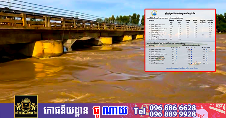 ភ្នំពេញ៖ក្រសួងធនធានទឹកនិងឧតុនិយម នៅថ្ងៃទី២១ ខែកក្កដា ឆ្នាំ២០២១ នេះ បានចេញព្រឹត្តិបត្រព័ត៌មាននិងព្យាករកម្ពស់ទឹក ដែលបង្ហាញអំពីការហក់ឡើងនូវកម្ពស់ទឹកតាមបណ្ដាស្ថានីយជលសាស្ត្រទាំង៧ ។