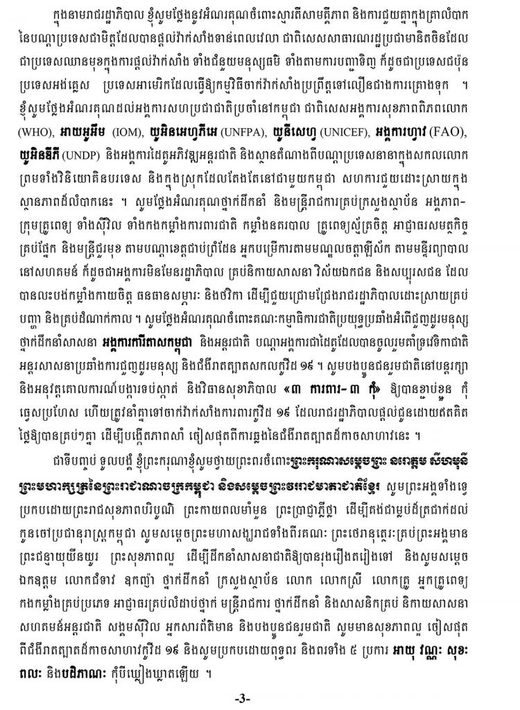 ខាងក្រោមនេះសុន្ទរកថាសម្តេចតេជោ ហ៊ុន សែន៖