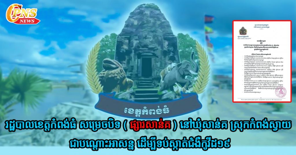 រដ្ឋបាលខេត្តកំពង់ធំ សម្រេចបិទ ( ផ្សារសាន់គ ) នៅឃុំសាន់គ ស្រុកកំពង់ស្វាយ ជាបណ្តោះអាសន្ន ដើម្បីទប់ស្កាត់ជំងឺកូវីដ១៩