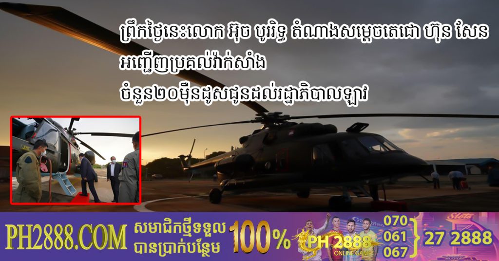 (ភ្នំពេញ): ក្រោយពីសម្ដេចតេជោ ហ៊ុន សែន នាយករដ្ឋមន្ត្រីនៃកម្ពុជា បានប្រកាសផ្ដល់វ៉ាក់សាំងប្រភេទស៉ីណូវ៉ាក់ចំនួន ២០ម៉ឺនដូស ជូនរដ្ឋាភិបាលប្រទេសឡាវ នៅព្រឹកថ្ងៃទី២៨ ខែកញ្ញា ឆ្នាំ២០២១នេះលោក អ៊ុច បូររិទ្ធ រដ្ឋលេខាធិការ ក្រសួងការបរទេស តំណាងរបស់សម្តេចតេជោ ហ៊ុន សែន ធ្វើដំណើរតាមឧទ្ធម្ភាគចក្រអញ្ជើញទៅប្រគល់ជូនលោកបណ្ឌិត ប៊ុនហ្វេង ភូមិម៉ាឡៃស៊ិត (Bounfeng Phommalaysith) រដ្ឋមន្ត្រីក្រសួងសុខាភិបាល និងជាអនុប្រធានគណកម្មការ ការពារគ្រប់គ្រងទប់ស្កាត់ការរីករាលដាលនៃជំងឺកូវីដ១៩ នៃប្រទេសឡាវ។