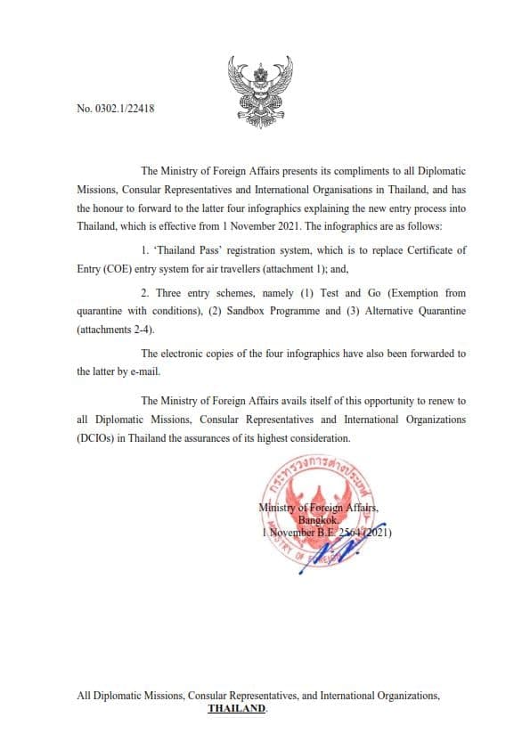 តាមរយះលិខិតនោះ បានបញ្ជាក់ថា អ្នកមានបំណងចូលទៅប្រទេសថៃ ត្រូវដាក់ពាក្យស្នើសុំការអនុញ្ញាតចូលប្រទេសថៃ ដែលហៅថា «Thailand Pass» ដែលនេះជាទម្រង់ថ្មី ជំនួសទម្រង់ចាស់ ដែលគេហៅថា Certificate of Entry (COE) សម្រាប់អ្នកដំណើរតាមផ្លូវអាកាស។ ស្ថានទូតថៃបានណែនាំផងដែរថា ប្រជាពលករកម្ពុជាដែលមានបំណងធ្វេីដំណេីរទៅប្រទេសថៃគួរដាក់ពាក្យសុំ Thailand Pass តាមប្រព័ន្ធអនឡាញឱ្យបានមុន ព្រោះដោយសារមានអ្នកដាក់ពាក្យច្រេីនមកពីជុំវិញពិភពលោកអាចត្រូវការពេលយូរ។