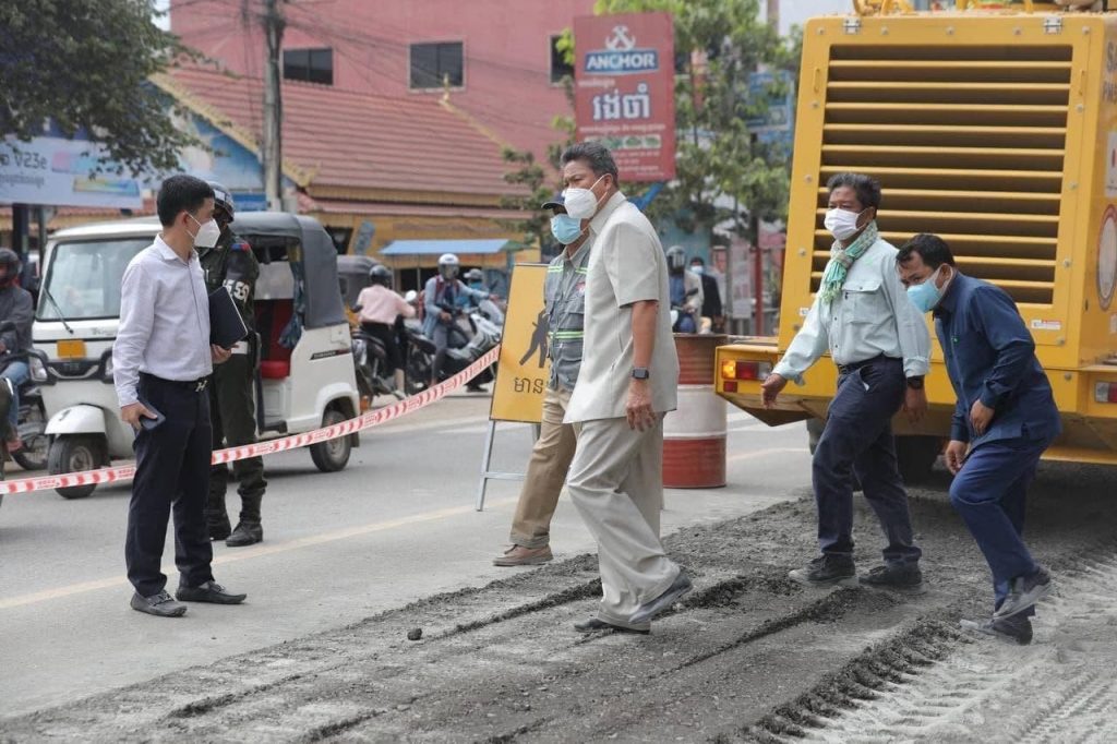 (កណ្តាល)៖ លោកទេសរដ្ឋមន្ត្រី ស៊ុន ចាន់ថុល រដ្ឋមន្ត្រីក្រសួងសាធារណការ និងដឹកជញ្ជូន នៅថ្ងៃទី៩ ខែធ្នូ ឆ្នាំ២០២១នេះ បានបន្តដឹកនាំក្រុមការងារបច្ចេកទេសក្រសួង ចុះពិនិត្យប្រសិទ្ធភាពនៃការប្រើគ្រឿងចក្រ Stabilizer ដែលកំពុងសាងសង់កំណាត់ផ្លូវជាតិលេខ២១B ប្រមាណ៣គីឡូម៉ែត្រ ចាប់ពីផ្លូវបំបែក ផ្លូវជាតិលេខ២ ដល់រង្វង់មូល ស្ពានព្រែកសំរោង ឋិតក្នុងភូមិសាស្ត្រទឹកដីខេត្តកណ្តាល។