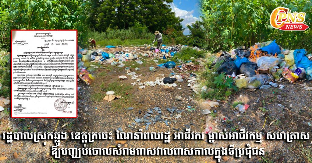 រដ្ឋបាលស្រុកឆ្លូង ខេត្តក្រចេះ ណែនាំពលរដ្ឋ អាជីវករ ម្ចាស់អាជីវកម្ម សហគ្រាស ឱ្យបញ្ឃប់ចោលសំរាមពាសវាលពាសកាលក្នុងទីប្រជុំជន