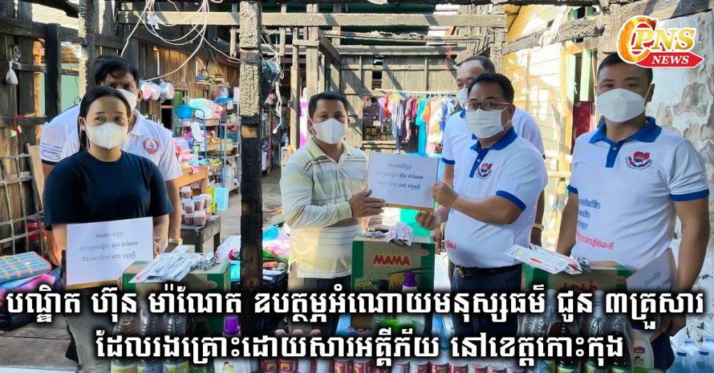 បណ្ឌិត ហ៊ុន ម៉ាណែត ឧបត្ថម្ភអំណោយមនុស្សធម៌ ជូន ៣គ្រួសារ ដែលរងគ្រោះដោយសារអគ្គីភ័យ នៅខេត្តកោះកុង