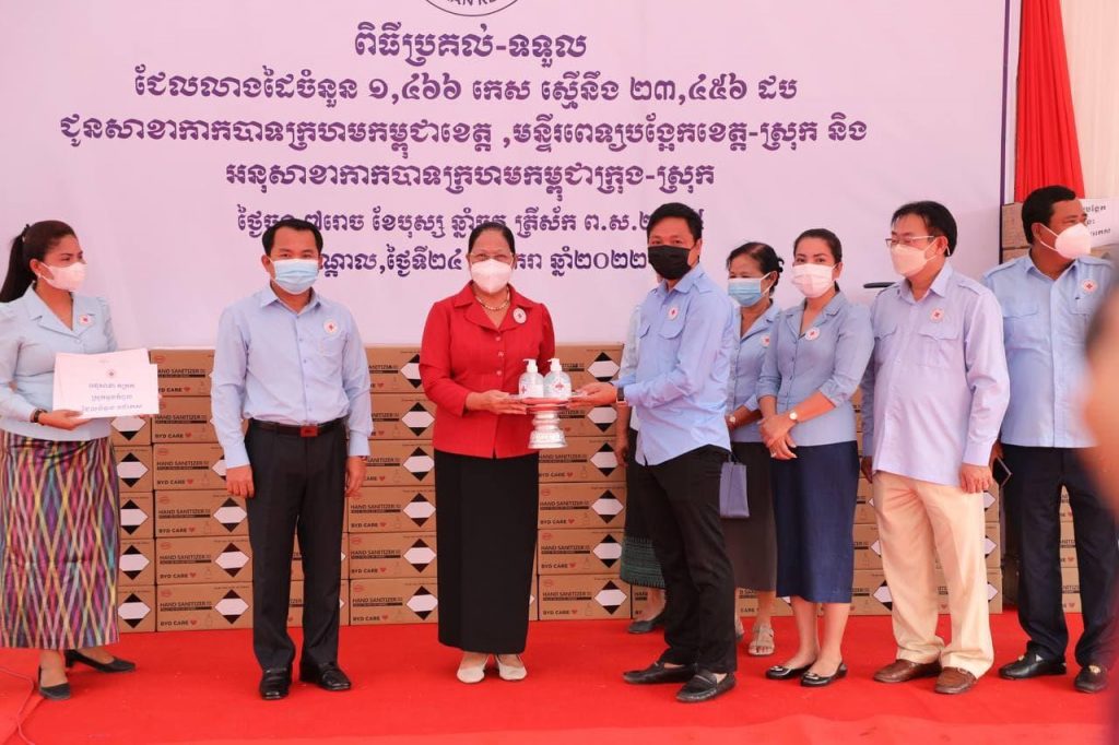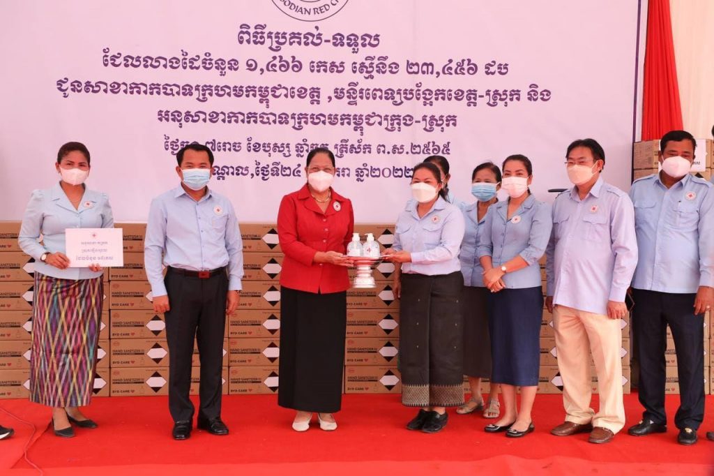កាកបាទក្រហមកម្ពុជា បន្តផ្តល់ជែលលាងដៃជាង១ពាន់កេស ដល់សាខារបស់ខ្លួននៅខេត្តកណ្តាល