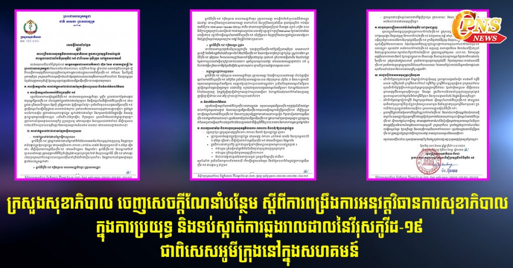 ក្រសួងសុខាភិបាល ចេញសេចក្តីណែនាំបន្ថែម ស្តីពីការពង្រឹងការអនុវត្តវិធានការសុខាភិបាល ក្នុងការប្រយុទ្ធ និងទប់ស្កាត់ការឆ្លងរាលដាលនៃវីរុសកូវីដ-១៩ ជាពិសេសអូមីក្រុងនៅក្នុងសហគមន៍