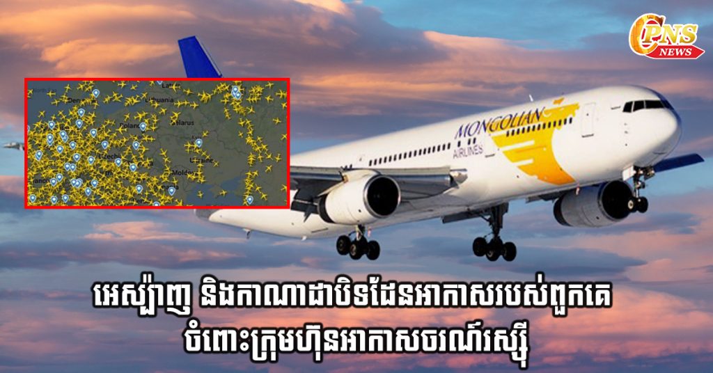 (មូស្គូ)៖ ប្រទេសអេស្ប៉ាញ និងកាណាដាបិទដែនអាកាសរបស់ពួកគេ ចំពោះក្រុមហ៊ុនអាកាសចរណ៍រស្ស៊ី ជុំវិញបញ្ហាជម្លោះនៅអ៊ុយក្រែន។ នេះបើយោងតាមការចេញផ្សាយដោយ សារព័ត៌មាន RT នៅថ្ងៃអាទិត្យ ទី២៧ ខែកម្ភៈ ឆ្នាំ២០២២។