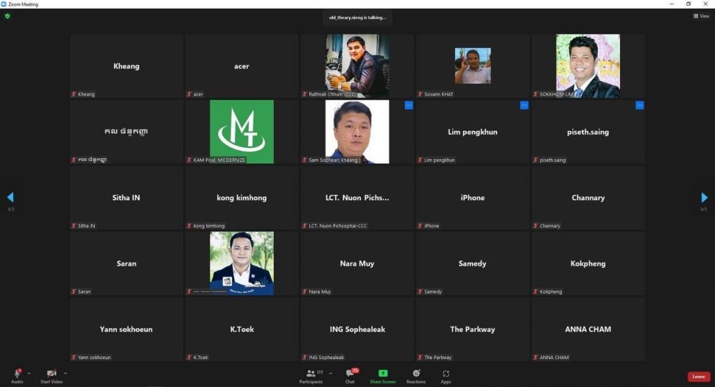 កិច្ចប្រជុំនេះធ្វើឡើងតាមរយៈការចូលរួមដោយផ្ទាល់ និងតាមប្រព័ន្ធអនឡាញ ក្រោមអធិបតីភាពអ្នកឧកញ៉ា លី ហួរ អនុប្រធានសភាពាណិជ្ជកម្មកម្ពុជា និងជាសហប្រធានក្រុមការងារ ឌ «ផ្នែកសំណង់ និងអចលនទ្រព្យ» ផ្នែកឯកជន ហើយក៏មានការចូលរួមពីសំណាក់បណ្ឌិត តាន់ មុន្នីវណ្ណ អនុប្រធានសភាពាណិជ្ជកម្មកម្ពុជា និងជាអនុសហប្រធានក្រុមការងារ ឌ ផ្នែកឯកជន និងវត្តមានឧកញ៉ា ងួន ម៉េងតិច អគ្គនាយកសភាពាណិជ្ជកម្មកម្ពុជា និងវត្តមានសមាជិក-សមាជិកាសភាពាណិជ្ជកម្មកម្ពុជា តំណាងសមាគមអ្នកសាងសង់នៅកម្ពុជា តំណាងសមាគមអ្នកអភិវឌ្ឍន៍លំនៅដ្ឋានកម្ពុជា ក្រុមហ៊ុនបុរីលំនៅដ្ឋានផ្នែកឯកជន និងសមាជិក-សមាជិកាក្រុមការងារជាច្រើនទៀតផងដែរ។