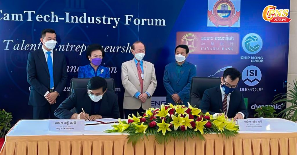 (ភ្នំពេញ)៖ សាកលវិទ្យាល័យបច្ចេកវិទ្យា និងវិទ្យាសាស្រ្តកម្ពុជា នៅរសៀលថ្ងៃទី០៨ ខែមេសា ឆ្នាំ២០២២នេះ បានរៀបចំវេទិកាសាកលវិទ្យាល័យ និងវិស័យឯកជនលើកទី១ ក្រោមអធិបតីដោយអ្នកឧកញ៉ាបណ្ឌិត ពុង ឃាវសែ ស្ថាបនិក និងជាប្រធានក្រុមប្រឹក្សាភិបាល នៃសាកលវិទ្យាល័យខេមតិច និងជាប្រធាន សមាគមសម្ព័ន្ធខ្មែរចិននៅកម្ពុជា និង អ្នកឧកញ៉ា ភាព ហៀក ស្ថាបនិកក្រុមហ៊ុនជីប ម៉ុងគ្រុប។
