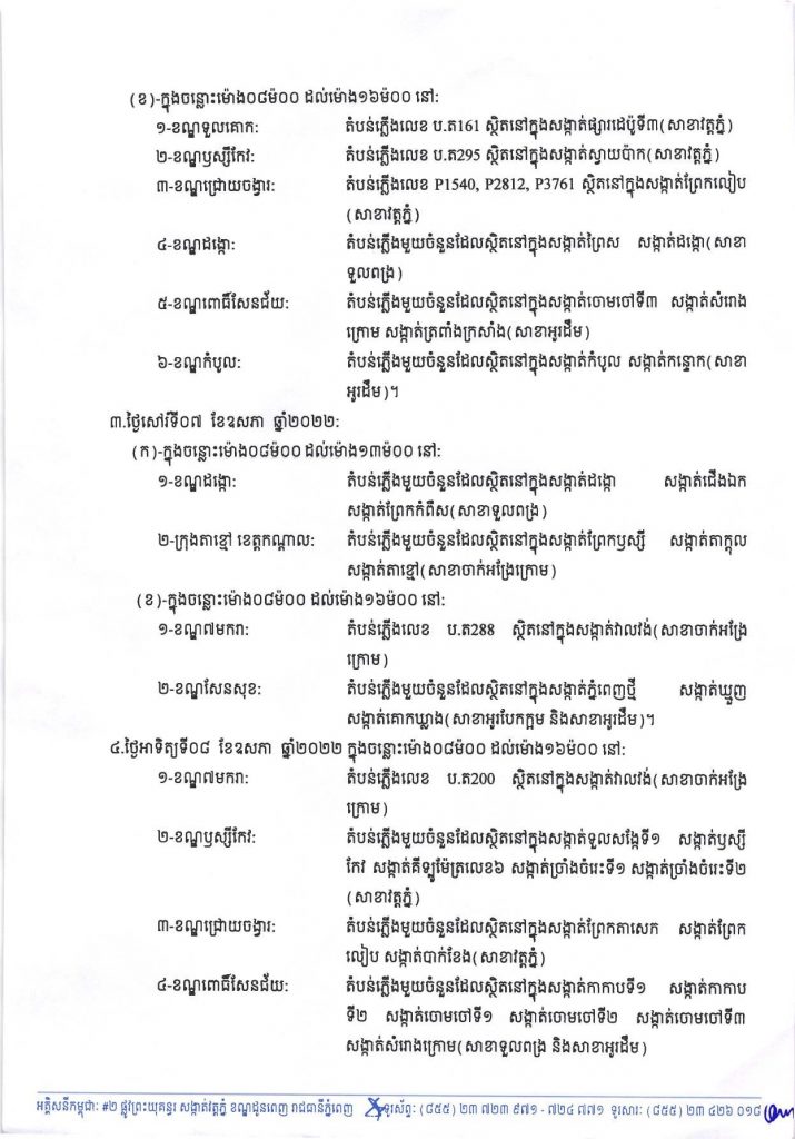 EDC ជូនដំណឹងពីការរអាក់រអួលចរន្ត នៅថ្ងៃនេះដល់ថ្ងៃទី០៨ ខែឧសភា ដើម្បីរុះរើគន្លង ខ្សែបណ្តាញ ផ្លាស់ប្តូរ តម្លើងបរិក្ខារ ងាយស្រួលដល់ការដ្ឋានពង្រីកផ្លូវ