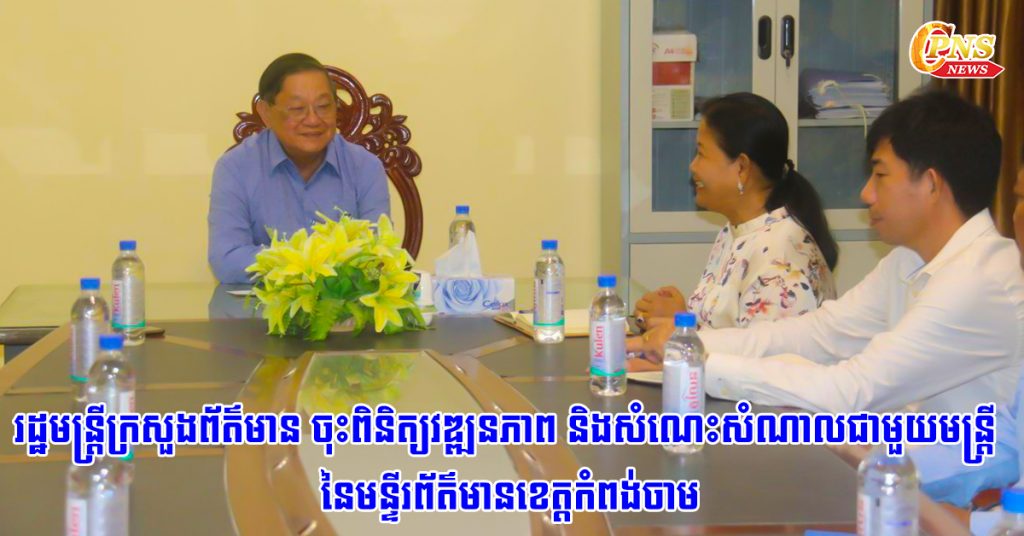 រដ្ឋមន្ត្រីក្រសួងព័ត៌មាន ចុះពិនិត្យវឌ្ឍនភាព និងសំណេះសំណាលជាមួយមន្ត្រី នៃមន្ទីរព័ត៌មានខេត្តកំពង់ចាម