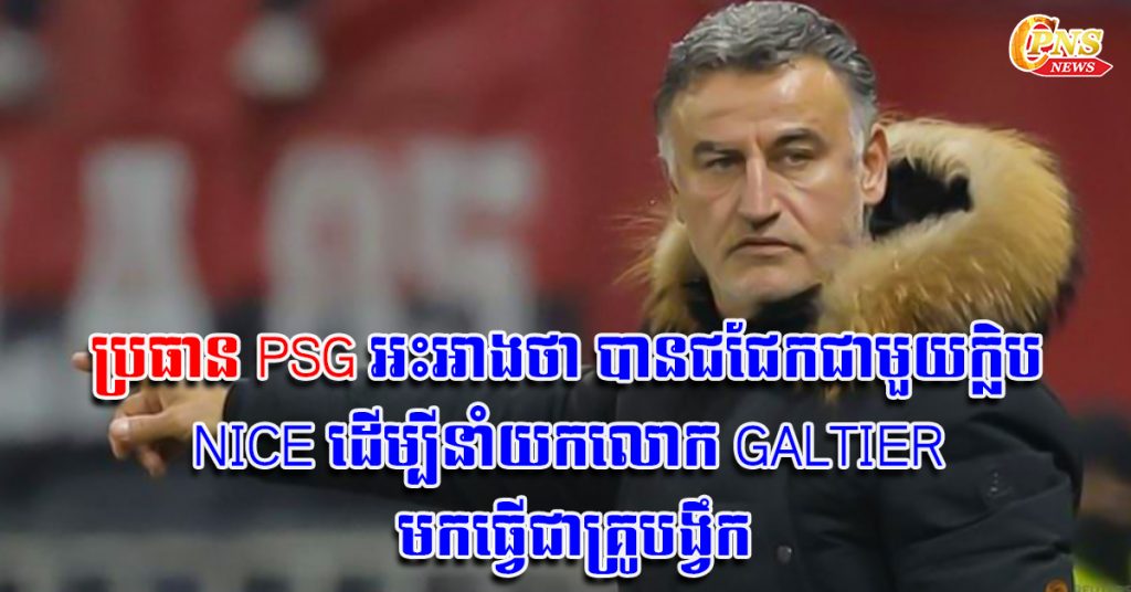 (ប៉ារីស)៖ ប្រធានក្លិប Paris St Germain លោក Nasser al-Khelaifi បានលើកឡើងថា លោកបានជជែកគ្នាជាមួយក្លិប Nice ដើម្បីជួលគ្រូបង្វឹក Christophe Galtier មកជំនួសតំណែងលោក Mauricio Pochettino នៅឯក្លិបរបស់លោក។ នេះបើយោងតាមសារព័ត៌មាន CNA ចេញផ្សាយនាថ្ងៃទី២៣ ខែមិថុនា ឆ្នាំ២០២២។
