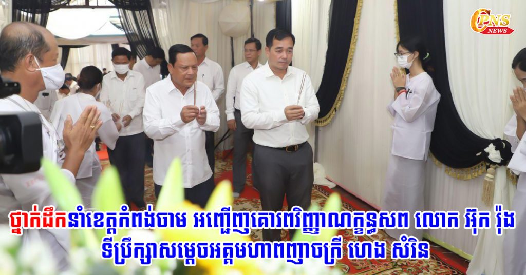 ថ្នាក់ដឹកនាំខេត្តកំពង់ចាម អញ្ជើញគោរពវិញ្ញាណក្ខន្ធសព លោក អ៊ុក រ៉ុង ទីប្រឹក្សាសម្តេចអគ្គមហាពញាចក្រី ហេង សំរិន