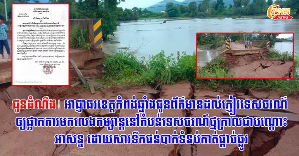 ជូនដំណឹង! អាជ្ញាធរខេត្តកំពង់ឆ្នាំងជូនព័ត៌មានដល់ភ្ញៀវទេសចរណ៍ ឲ្យផ្អាកការមកលេងកម្សាន្តនៅតំបន់ទេសចរណ៍ថ្មក្រាលជាបណ្ដោះអាសន្ន ដោយសារទឹកជន់បាក់ទំនប់កាត់ផ្តាច់ផ្លូវ