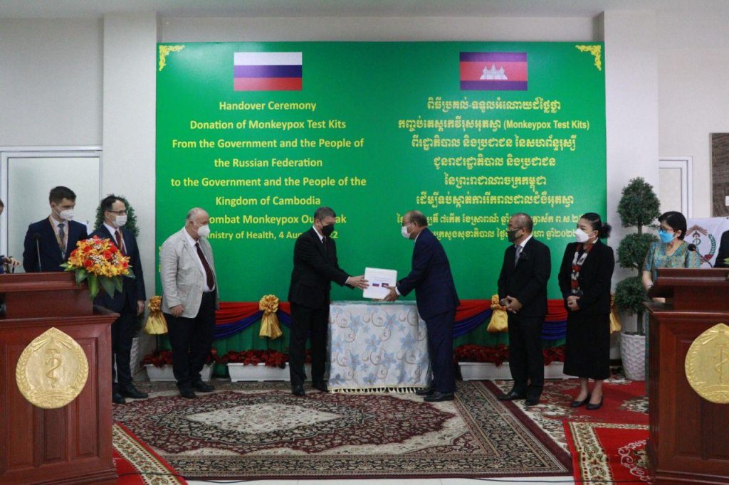 ទទួលកញ្ចប់តេស្តរកវីរុសអុតស្វា (Monkeypox Test Kits) ចំនួន ៥០០ឯកតា ពីរដ្ឋាភិបាល និងប្រជាជនសហព័ន្ធរុស្សី ជូនរាជរដ្ឋាភិបាល និងប្រជាជនកម្ពុជា ដើម្បីទប់ស្កាត់ការរីករាលដាល នៃជំងឺអុតស្វា