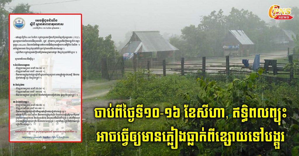 ក្រសួងធនធានទឹក ជូនដំណឹងពីស្ថានភាពធាតុអាកាសនៅកម្ពុជា ចាប់ពីថ្ងៃទី១០-១៦ ខែសីហា, ឥទ្ធិពលព្យុះ អាចធ្វើឲ្យមានភ្លៀងធ្លាក់ពីខ្សោយទៅបង្គួរ