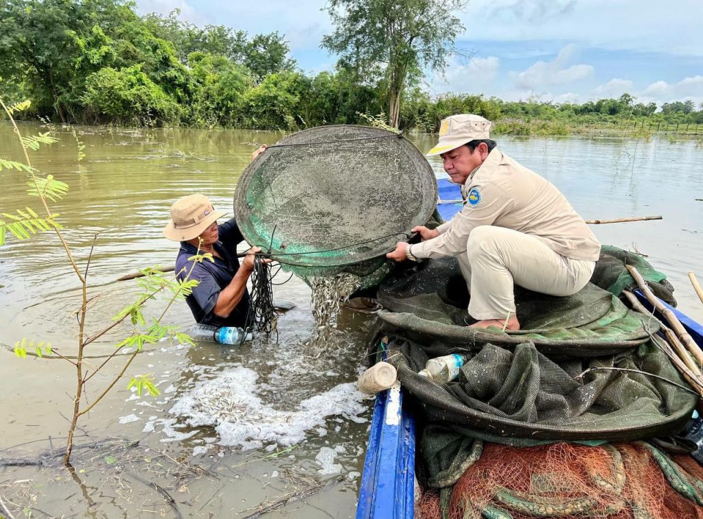 (ក្រចេះ)៖ កម្លាំងផ្នែកជលផលព្រែកប្រសព្វ និងមន្ត្រីខណ្ឌជលផលក្រចេះ ដឹកនាំដោយលោក ម៉ុក់ ពន្លក នាយខណ្ឌជលផលក្រចេះ នៅថ្ងៃទី១៤ ខែសីហា ឆ្នាំ២០២២នេះ បានសហការជាមួយគណៈបញ្ជាការឯកភាពស្រុកឆ្លូង និងសហគមន៍នេសាទ ចុះត្រួតពិនិត្យ បង្ក្រាបបទល្មើសជលផលនៅចំណុចបឹងឈើទាលភ្លោះ ឃុំព្រែកសាម៉ាន់ ស្រុកឆ្លូង ខេត្តក្រចេះ។
