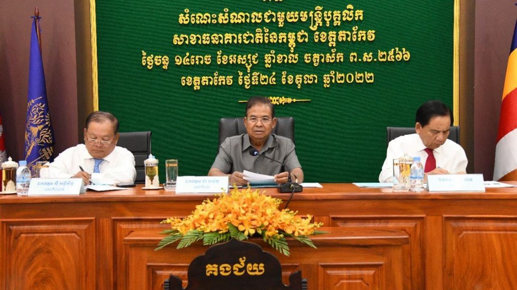 ការជួបសំណេះសំណាលនេះ ធ្វើឡើងនៅថ្ងៃទី២៤ ខែតុលា ឆ្នាំ២០២២ ក្នុងខេត្តតាកែវ។ ក្នុងនោះលោកទេសាភិបាល ក៏បានផ្ដល់អនុសាសន៍សំខាន់ៗ ដល់មន្រ្ដីធនាគារជាតិនៃកម្ពុជា សាខាខេត្តតាកែវរួមមាន៖