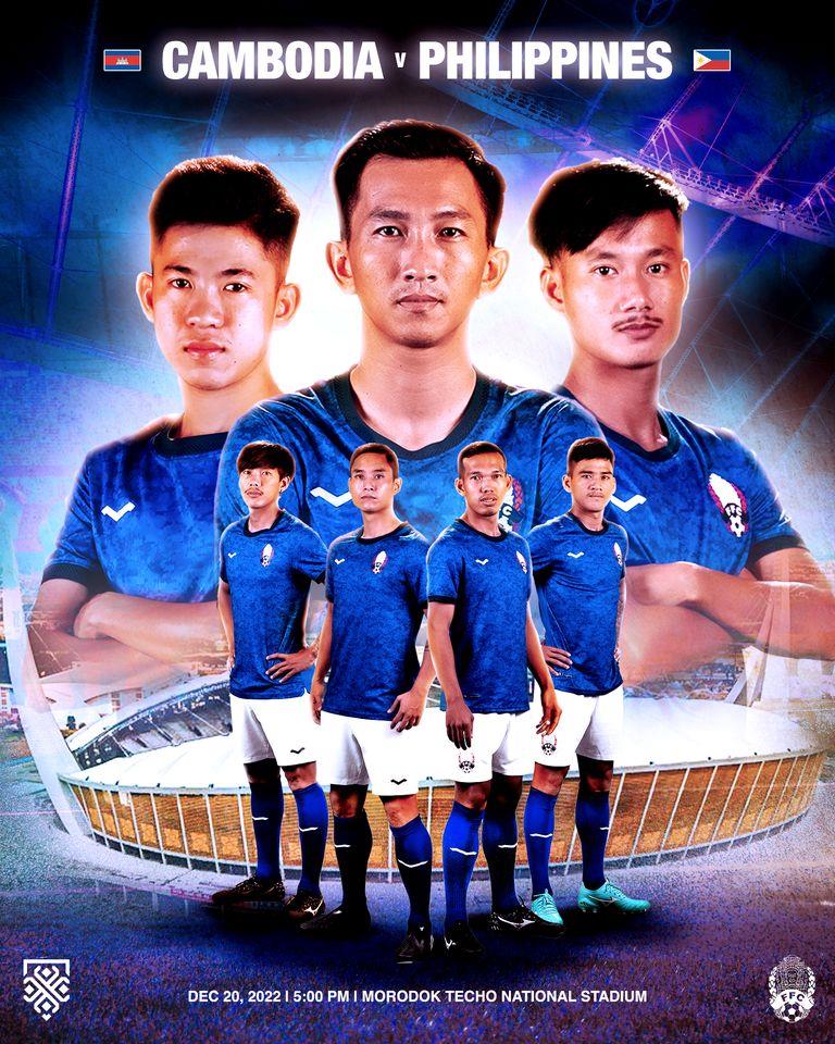 (ភ្នំពេញ)៖ ក្រុមជម្រើសជាតិកម្ពុជា នឹងត្រូវប្រកួតបើកឆាកជាមួយក្រុមភ្ញៀវហ្វីលីពីន នៃព្រឹត្តិការណ៍បាល់ទាត់ជើងឯកអាស៊ីអាគ្នេយ៍ AFF Mitsubishi Electric Cup 2022 នាវេលាម៉ោង ៥ល្ងាចថ្ងៃទី២០ ខែធ្នូនេះ នៅពហុកីឡដ្ឋានជាតិមរតកតេជោ។