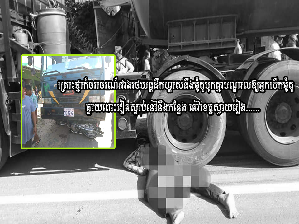 គ្រោះថ្នាក់ចរាចរណ៍រវាងរថយន្តដឹកហ្គាសនឹងម៉ូតូបុកគ្នាបណ្តាលឱ្យអ្នកបើកម៉ូតូធ្លាយពោះវៀនស្លាប់នៅនឹងកន្លែងនៅខេត្តស្វាយរៀង…