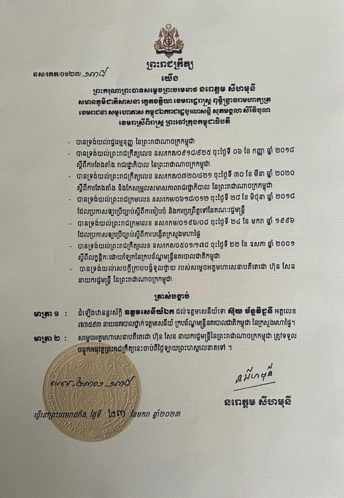 ខាងក្រោមនេះជាព្រះរាជក្រឹត្យរបស់ព្រះមហាក្សត្រ៖