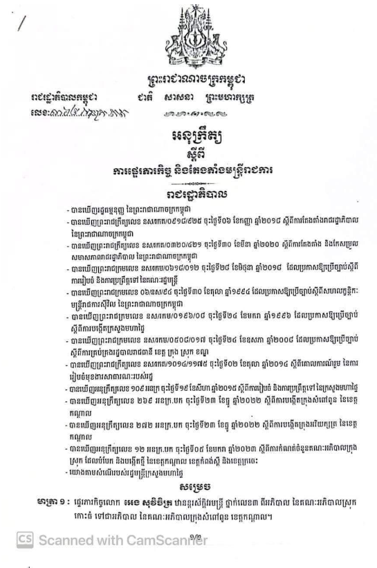 សម្ដេចតេជោ ហ៊ុន សែន ផ្ទេរភារកិច្ចអភិបាលស្រុកកោះធំ មកជាអភិបាលក្រុងសំពៅពូន និងតែងតាំងអភិបាលក្រុងអរិយក្សត្រ និងស្រុកកោះធំ …