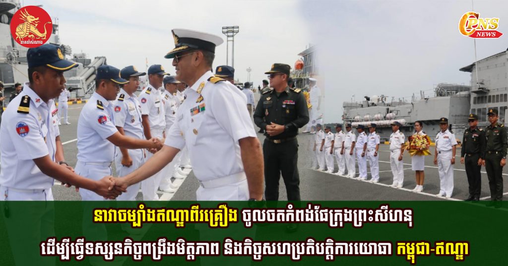 នាវាចម្បាំងឥណ្ឌាពីរគ្រឿង ចូលចតកំពង់ផែក្រុងព្រះសីហនុ ដេីម្បីធ្វើទស្សនកិច្ចពង្រឹងមិត្ដភាព និងកិច្ចសហប្រតិបត្ដិការយោធា កម្ពុជា-ឥណ្ឌា …