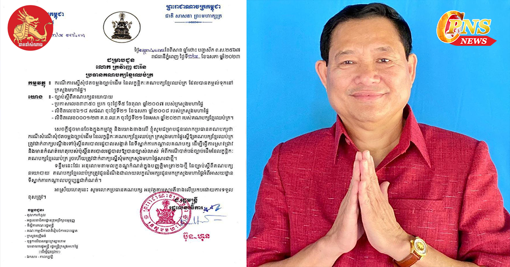 ក្រសួងមហាផ្ទៃ ប្រាប់ប្រធានគណបក្សខ្មែរឈប់ក្រ ឱ្យដាក់ពាក្យបណ្តឹងនៅប៉ុស្តិ៍នគរបាល មុននឹងស្នើសុំថតចម្លងច្បាប់ដើម នៃលក្ខន្តិកៈគណបក្ស …
