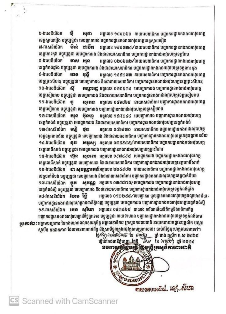 ខាងក្រោមនេះជាសេចក្តីសម្រេចរបស់ឧបនាយករដ្ឋមន្រ្តី ទៀ សីហា៖