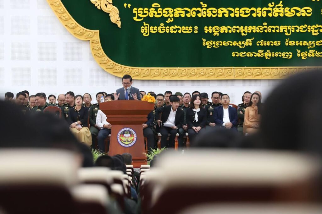(ភ្នំពេញ)៖ «ពិតណាស់ បច្ចុប្បន្នប្រទេសយើងមានសុខសន្តិភាព ដូច្នេះកងកម្លាំងប្រដាប់អាវុធយើង មិនចេញទៅច្បាំងក្នុងសមរភូមិដូចរៀមច្បងយើងជំនាន់មុនទៀតទេ។ ប៉ុន្តែ កងកម្លាំងទាំងបីប្រភេទ គឺកងយោធពលខេមរភូមិន្ទ កងនគរបាលជាតិ និងកងរាជអាវុធហត្ថ ជាអ្នកឈរការពារសន្តិភាពនិងភាពសុខសាន្តរបស់ប្រជាពលរដ្ឋ»។