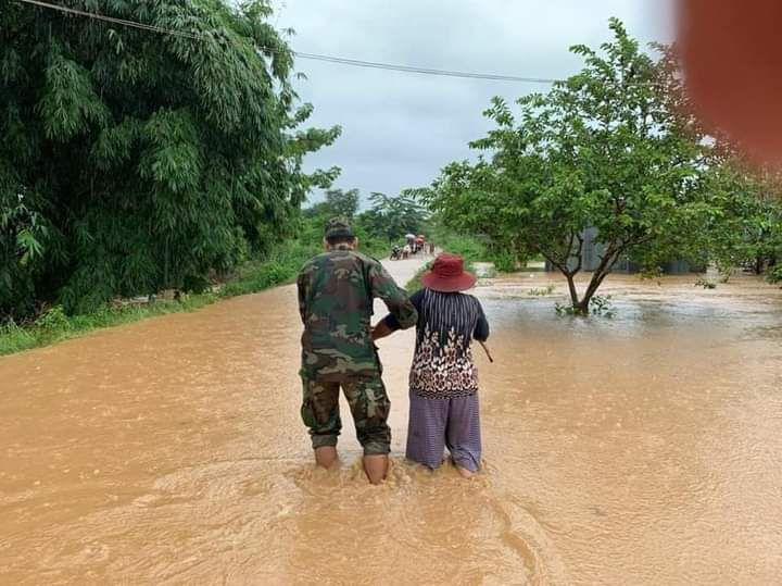 (បាត់ដំបង)៖ ថ្ងៃទី០៩ ខែតុលា ឆ្នាំ២០២០ កម្លាំងអន្តរាគមន៍របស់ផ្នែកសឹករងភ្នំព្រឹក និងផ្នែកសឹករងសំពៅលូន បានសហការជាមួយមន្ត្រីអាជ្ញាធរមូលដ្ឋានកំពុងរួមគ្នាជួយសង្គ្រោះប្រជាពលរដ្ឋរងគ្រោះ ដឹកជញ្ជូនរបស់របរ សម្ភារ និងមនុស្សទៅកាន់ទីទួលសុវត្ថិភាព ដែលបណ្ដាលមកពីឥទ្ធិពលព្យុះភ្លៀង ធ្វើឱ្យមានជំនន់ទឹកភ្លៀងលិចផ្ទះសំបែង និងហេចដ្ឋារចនាសម្ព័ន្ធមួយចំនួន។